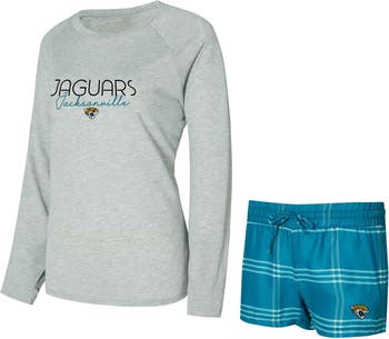 Cozy up after Jacksonville Jaguars game day and dream of future big wins with this Petition T-Shirt and Shorts Set from Concepts Sport. Made from breathable fabrics, this Jacksonville Jaguars set features a long sleeve t-shirt paired with a pair of shorts that are comfortable and stylish. The raglan sleeves on the shirt provide added shoulder room and a freer range of motion, making it perfect for both lounging and light activity.