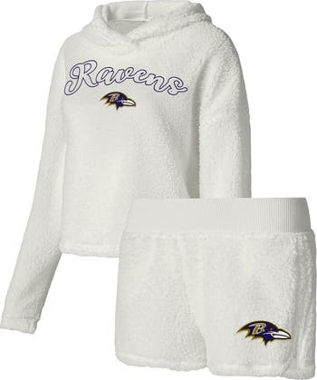 Women's Concepts Sport White Baltimore Ravens Fluffy Pullover Sweatshirt & Shorts Sleep Set