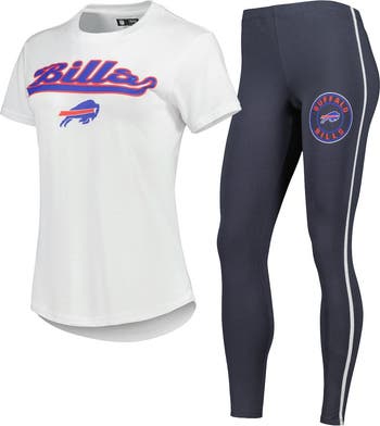 Feel like you're sleeping on a cloud with this cozy Concepts Sport Sonata set. It includes a T-shirt and leggings decked in Buffalo Bills graphics with complementing stripes that speak to your fandom. The classic tee construction and stretchy elastic waistband provide extra comfort as you dream of Buffalo Bills victories.