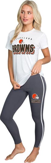 Sometimes you like to cheer on the Cleveland Browns from the comfort of your home, and this Concepts Sport Sonata set makes it that much easier. Includes a comfortable tee and leggings with eye-catching Cleveland Browns graphics and details. This set's soft, stretchy fabric also offers a casual feel.