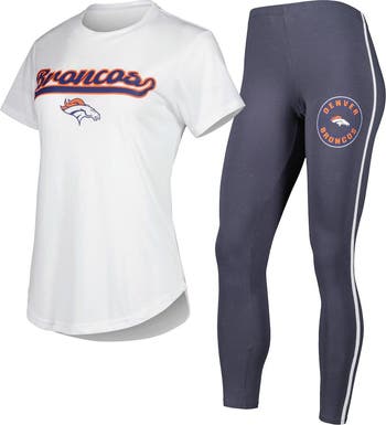 Feel like you're sleeping on a cloud with this cozy Concepts Sport Sonata set. It includes a T-shirt and leggings decked in Denver Broncos graphics with complementing stripes that speak to your fandom. The classic tee construction and stretchy elastic waistband provide extra comfort as you dream of Denver Broncos victories.
