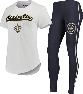 Feel like you're sleeping on a cloud with this cozy Concepts Sport Sonata set. It includes a T-shirt and leggings decked in New Orleans Saints graphics with complementing stripes that speak to your fandom. The classic tee construction and stretchy elastic waistband provide extra comfort as you dream of New Orleans Saints victories.