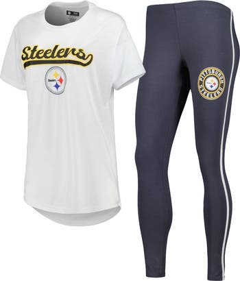 Feel like you're sleeping on a cloud with this cozy Concepts Sport Sonata set. It includes a T-shirt and leggings decked in Pittsburgh Steelers graphics with complementing stripes that speak to your fandom. The classic tee construction and stretchy elastic waistband provide extra comfort as you dream of Pittsburgh Steelers victories.