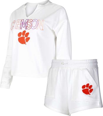 Women's Concepts Sport White Clemson Tigers Sunray Notch Neck Long Sleeve T-Shirt & Shorts Set