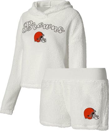 Women's Concepts Sport White Cleveland Browns Fluffy Pullover Sweatshirt & Shorts Sleep Set