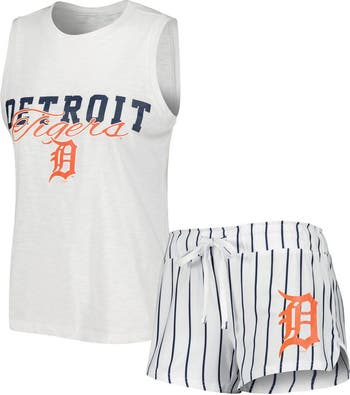 Support your Detroit Tigers while sleeping with this Reel Pinstripe sleep set from Concepts Sport. The soft tank top and matching shorts feature a throwback Detroit Tigers graphics design, while an elastic waistband ensures the perfect fit.