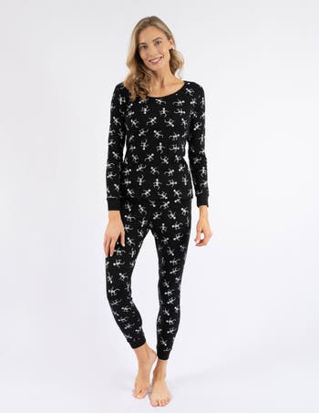 • Women's Cotton Matching Family Halloween Pajamas in fun skeleton and skull prints