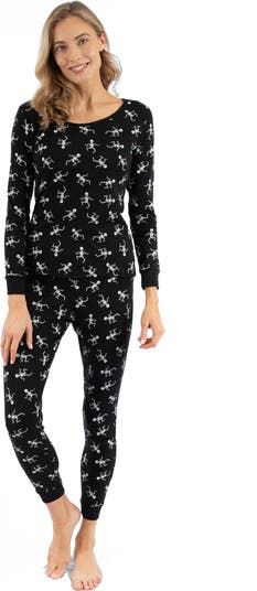 - Women's Cotton Matching Family Halloween Pajamas in fun skeleton and skull prints