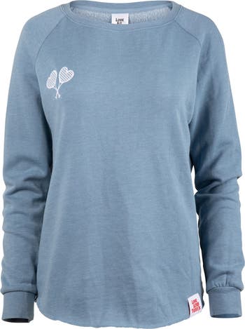 You will not want to take off this incredibly soft sweatshirt: the Love All Tennis Women's Courtney Lightweight Wash Sweatshirt. It features a cute fit with slightly scalloped front and back and is available in beautiful wash colors.
