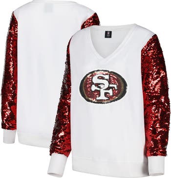 Sparkle and shine while showing off your San Francisco 49ers pride in this Cuce Sequin Sleeve V-Neck Pullover Sweatshirt. The soft brushed fleece lining ensures cozy comfort, while the rib-knit collar, hem and sleeve cuffs provide a snug and secure fit. Plus, the dazzling sequin sleeves and large sequin team logo at the center front make it clear you're ready to shine as brightly as your beloved San Francisco 49ers.