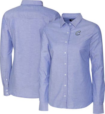 Women's Cutter & Buck Blue Columbus Clippers Stretch Oxford Long Sleeve Tri-Blend Button-Up Dress Shirt