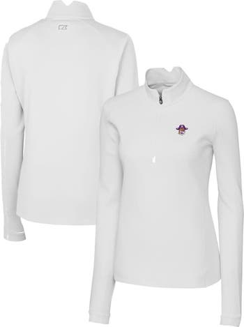 Women's Cutter & Buck White ECU Pirates Traverse Stretch Quarter-Zip Pullover Top