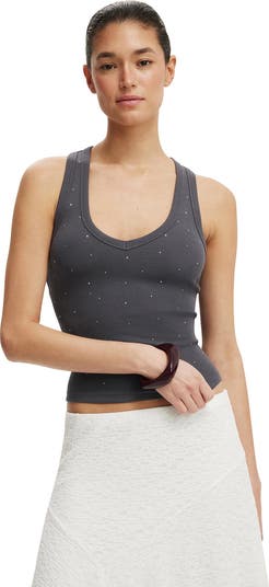 A close-fitting top with a V-neckline and racer back design. Subtle diamante detailing adds a touch of shine to a simple, everyday piece.