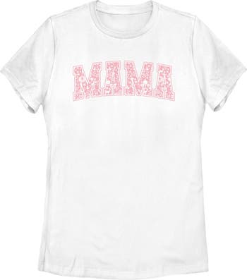 - Add a bit of magic to your mom's day with this stylish new women's t-shirt! Featuring a cute, bright pink graphic of the word: "Mama" with different princess-themed and floral items printed inside.