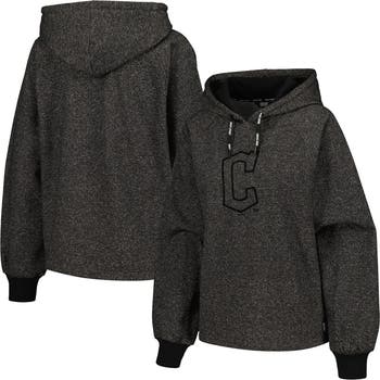 Women's DKNY Sport Black Cleveland Guardians Debbie Dolman Raglan Pullover Hoodie