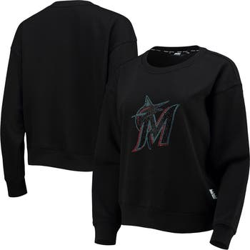 The DKNY Sport Black Miami Marlins Carrie Pullover Sweatshirt is the perfect way to show your support for the Miami Marlins. Made from a soft cotton and polyester blend, this lightweight sweatshirt is ideal for mild temperatures. The pullover design allows for easy layering, while rhinestone embellishments add a touch of sparkle. Whether you're cheering at the stadium or relaxing at home, this sweatshirt ensures both comfort and style.