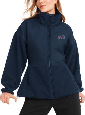 When the temp dips down during the Buffalo Bills season, bundle up comfortably and stylishly in this Drew Mixed Media full-zip jacket from DKNY Sport. It features a subtle Buffalo Bills logo and the cozy warmth of Sherpa fabric. An adjustable waist cinch lets you customize the fit, while front pockets keep small items easily accessible.