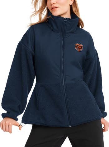 Women's DKNY Sport Navy Chicago Bears Drew Mixed Media Full-Zip Jacket