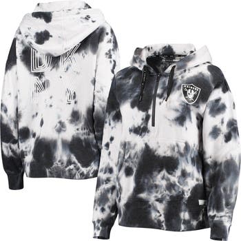 Women's DKNY Sport White/Black Las Vegas Raiders Dakota Oversized Tie-Dye Half-Zip Hoodie