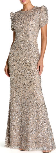 Step into elegance with our Gathered Short Sleeve Beaded Gown, featuring intricate beadwork and a flattering silhouette—perfect for special occasions and timeless style.