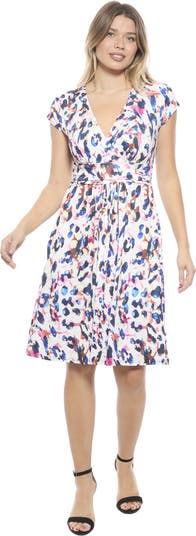 Womens Essential Abstract V-Neck Cap Sleeve Knee Length A-Line Pocket Dress