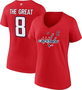 Women's Fanatics Alexander Ovechkin Athletic Red Washington Capitals NHL All-Time Leading Goal Scorer The Great 8 Name & Number V-Neck T-Shirt