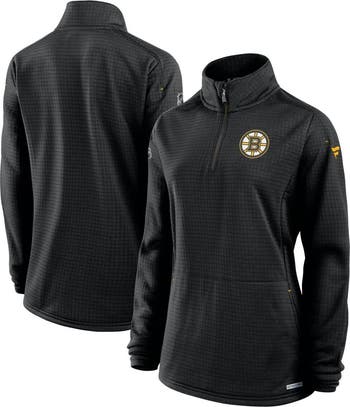 Represent your Boston Bruins with pride in this Fanatics Authentic Pro Rink Lightweight Quarter-Zip Pullover Top. This lightweight pullover features heat-sealed team graphics and a mock neck for added warmth. The droptail hem with side splits and flatlock stitching provide a comfortable and stylish fit. Whether you're cheering on the Boston Bruins at the rink or watching from home, this pullover will keep you comfortable and stylish.