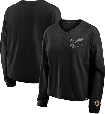 Dress fashionably and comfortably on Boston Bruins game day in this Oversized All Out Effort Long Sleeve Henley T-Shirt by Fanatics. Its oversized design and dropped shoulders provide a relaxing fit with plenty of room for effortless movement. The team name in cursive and understated logo perfectly complement the stylish look of this Boston Bruins top.