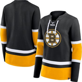 Women's Fanatics Black Boston Bruins Prime Time Lace-Up Long Sleeve T-Shirt