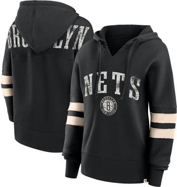 Women's Fanatics Black Brooklyn Nets Bold Move Dolman V-Neck High Hip Hoodie