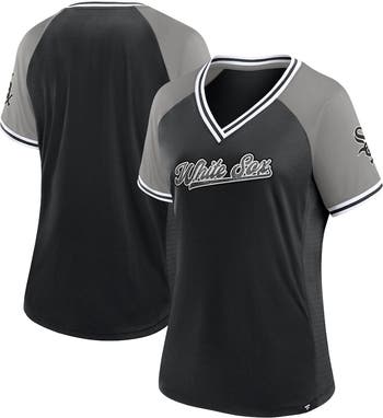 Women's Fanatics Black Chicago White Sox Glitz & Glam League Diva Raglan V-Neck T-Shirt