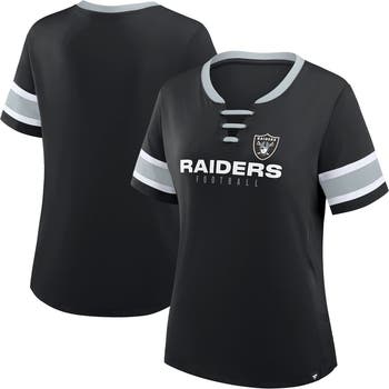 Cheer on the Las Vegas Raiders in trendy apparel with this Redzone Draw Play Athena Lace-Up T-Shirt by Fanatics. Stretch jersey fabric provides a lightweight feel, while the classic fit creates a flattering silhouette. Rubberized team details and a faux lace-up neckline add stylish touches to this comfortable Las Vegas Raiders tee.