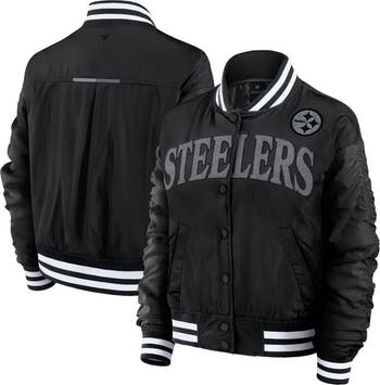 Stay warm and stylish all season long with this Pittsburgh Steelers Elements Wave Full-Snap Jacket from Fanatics. This Pittsburgh Steelers jacket features a unique ruched sleeve design and a relaxed fit with dropped shoulders. The embroidered chenille team wordmark across the chest and the embroidered team logo on the left chest make it clear who you're rooting for.