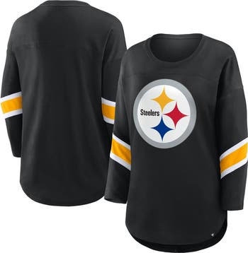 Declare your unwavering allegiance to the Pittsburgh Steelers with this stylish and comfortable Plus Size Redzone 3/4-Sleeve Scoop Neck T-Shirt from Fanatics. Featuring a relaxed fit and classic hip length, this tee ensures a comfortable and flattering look for any fan. The lightweight jersey fabric and dropped shoulder seams provide ease of movement, perfect for cheering on the team from the stands or relaxing at home. The heat-sealed silicone Pittsburgh Steelers logo has a smooth, rubberized finish designed to stretch without cracking, ensuring long-lasting quality.