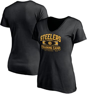 Women's Fanatics Black Pittsburgh Steelers Training Camp Stripe V-Neck T-Shirt