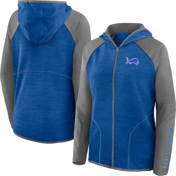 Stay warm and spirited while repping your team with this Detroit Lions Plus Size End Around Pass Full-Zip Hoodie from Fanatics. The lightweight design makes it perfect for mild temperatures, whether you're heading to the game or running errands. The contrast color hood lining and heat-sealed silicone applique plus the team wordmark add a stylish touch that shows off your Detroit Lions pride in a subtle yet fashionable way.