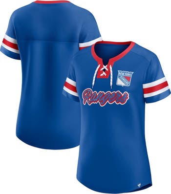 FANATICS Women's Fanatics Blue New York Rangers Iconic Athena Lace-Up T-Shirt, Alternate, color, Blue