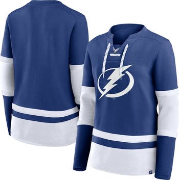 Elevate your Tampa Bay Lightning look with this Prime Time Lace-Up Long Sleeve T-Shirt by Fanatics. Featuring an enlarged team logo screen printed on the front and sewn-on stripes for a touch of sporty style, it shows off your team pride in comfort. Fleece lining provides extra warmth, making this Tampa Bay Lightning tee perfect for chilly game days.