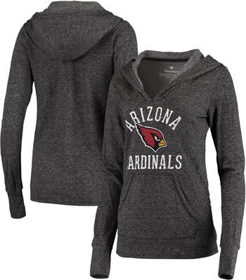 The Women's Fanatics Branded Black Arizona Cardinals Doubleface Slub Pullover Hoodie is the perfect way to show your support for the Arizona Cardinals. Made from a soft and comfortable polyester and cotton blend, this hoodie features distressed screen print graphics that give it a vintage look. The flatlock stitching and front pouch pocket add to the comfort and style of this hoodie. Whether you're cheering on the Cardinals at the stadium or just relaxing at home, this hoodie is sure to keep you warm and comfortable.