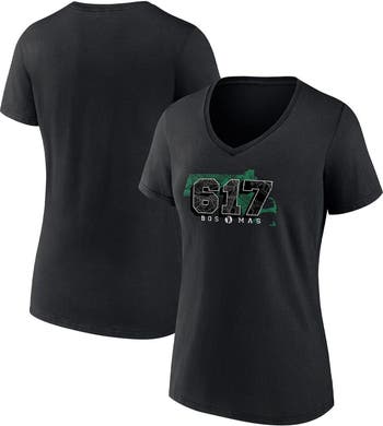 Women's Fanatics Branded Black Boston Celtics Hometown Collection 617 V-Neck T-Shirt