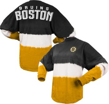 The Women's Fanatics Branded Black/Gold Boston Bruins Ombre Long Sleeve T-Shirt is the perfect way to show your support for the Boston Bruins. With its low-puff screen-print graphics and crew-neck collar, this shirt is both stylish and comfortable. The dropped shoulders, ribbed collar, and sleeve cuffs add a touch of sophistication, while the rounded hem ensures a flattering fit. Made from soft cotton, this shirt is perfect for any occasion, whether you're cheering on the Bruins at the game or just relaxing at home.