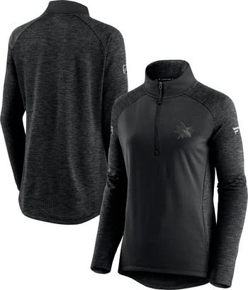 Women's Fanatics Branded Black/Heathered Charcoal San Jose Sharks Authentic Pro Travel & Training Raglan Quarter-Zip Jacket
