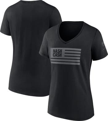 The Women's Fanatics Branded Black Nashville SC x Johnny Cash Flying Corp V-neck T-shirt is a must-have for any devoted Nashville SC fan. This stylish tee features screen-printed graphics that combine the iconic imagery of Johnny Cash with the bold colors of Nashville SC, creating a unique and eye-catching design. Made from soft and breathable cotton, this V-neck T-shirt offers both comfort and style, making it perfect for cheering on your favorite team at the stadium or simply showing your support for the Music City's soccer club.