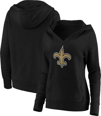 The Women's Fanatics Branded Black New Orleans Saints Primary Team Logo V-Neck Pullover Hoodie is the perfect way to show unwavering support for the New Orleans Saints. Crafted from a soft cotton and polyester blend, this midweight hoodie ensures comfort and warmth during chilly game days. The screen-printed graphics proudly display the iconic New Orleans Saints logo, making it a must-have for any devoted fan. Whether cheering from the stands or showing support, this hoodie represents the New Orleans Saints in style.