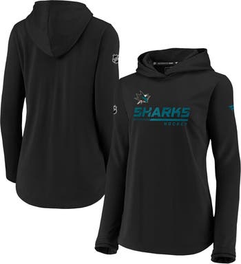 The Women's Fanatics Branded Black San Jose Sharks Authentic Pro Pullover Hoodie is the ultimate way to show your unwavering support for the San Jose Sharks. This lightweight hoodie is perfect for mild temperatures, featuring a mesh hood lining for breathability and a waffle fleece lining for added warmth. The liquid chrome NHL shield and long sleeves proudly display your Sharks pride, while the double cuff with thumbholes and rounded bottom hem with split sides provide a comfortable and stylish fit. Whether you're cheering from the stands or just showing your support, this hoodie is the perfect way to represent the San Jose Sharks.