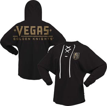The Women's Fanatics Branded Black Vegas Golden Knights Jersey Lace-Up V-Neck Long Sleeve Hoodie T-Shirt is the perfect way to show your support for the Vegas Golden Knights. With its dropped shoulders, low-puff screen print graphics, and rounded droptail hem, this hoodie is both stylish and comfortable. The V-neck design adds a touch of femininity, while the lace-up closure ensures a snug fit. Whether you're cheering on the Golden Knights at the game or just relaxing at home, this hoodie is sure to keep you warm and stylish.