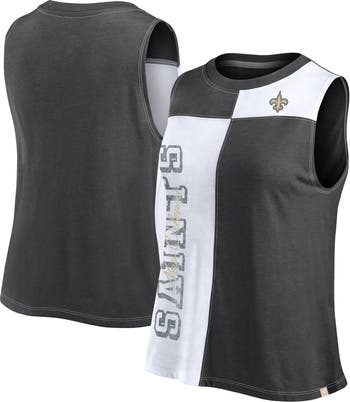 The Women's Fanatics Branded Black/White New Orleans Saints Script Color Block Tank Top is the perfect way to show your unwavering support for the New Orleans Saints. With its heat-sealed and distressed screen-print graphics, this tank top is sure to turn heads. The contrast-color stitching adds a touch of style, while the cotton and polyester blend ensures comfort and durability. Whether you're cheering on the Saints from the stands or just showing your team spirit, this tank top is a must-have for any true fan.