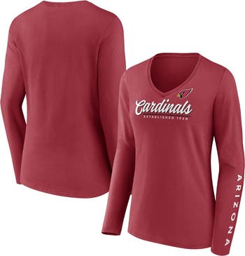 The Women's Fanatics Branded Cardinal Arizona Cardinals Drive Forward V-Neck Long Sleeve T-Shirt is the perfect way to show your support for the Arizona Cardinals. Made from soft cotton, this shirt features screen print graphics that proudly display the Cardinals logo. The v-neck design adds a touch of style, while the long sleeves will keep you warm on game day. Whether you're cheering from the stands or watching from home, this shirt is a must-have for any Cardinals fan.