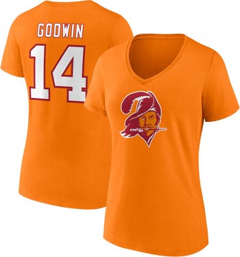Celebrate one of the NFL's most beloved uniform colors with this Chris Godwin Tampa Bay Buccaneers Throwback Icon T-shirt from Fanatics Branded. The retro design is inspired by the iconic orange jerseys the Bucs first wore back in the '70s. Featuring a classic "Bucco Bruce" logo on the front, this comfy cotton tee also highlights your favorite current player on the team with a printed name and number graphics on the back.