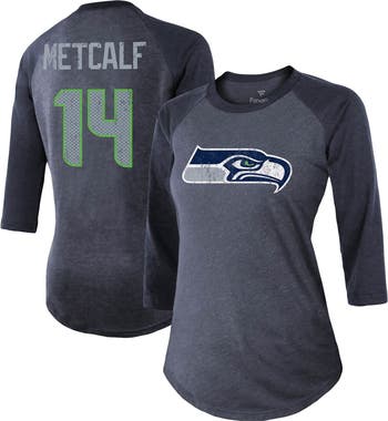 Women's Fanatics Branded DK Metcalf College Navy Seattle Seahawks Team Player Name & Number Tri-Blend Raglan 3/4-Sleeve T-Shirt